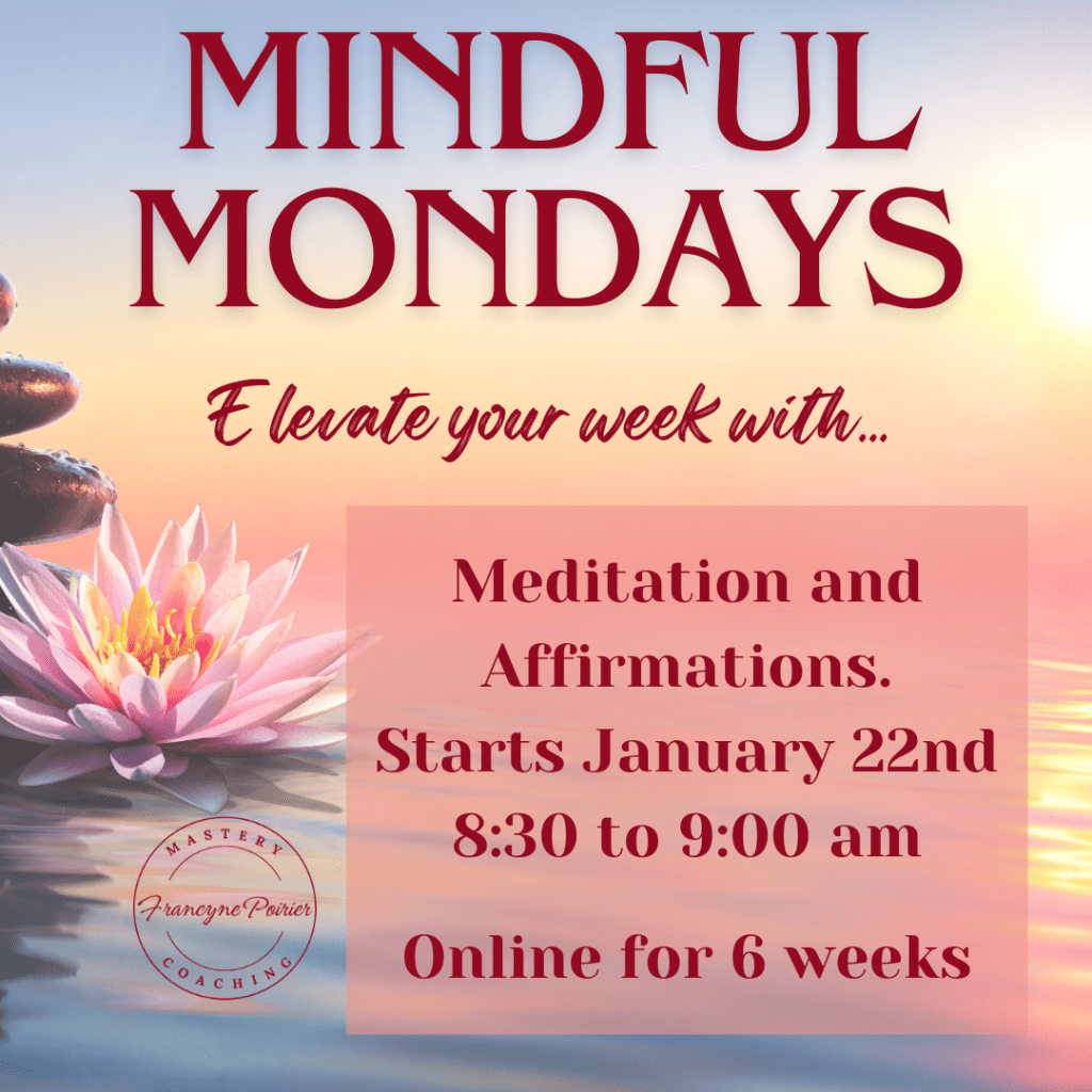 Welcome to an Online ½-hour meditation and affirmations every Monday to set the pace for your week.