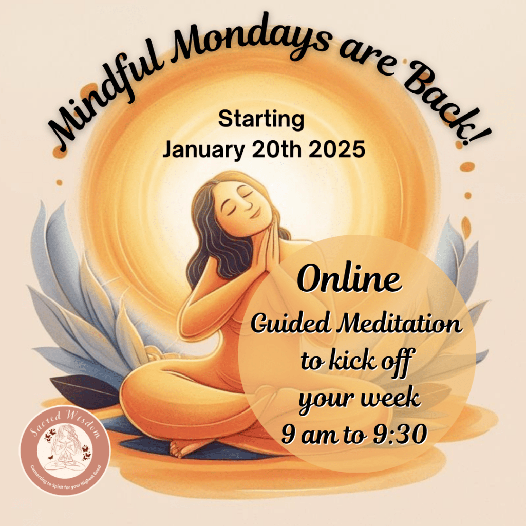 Here is a great way to kick off your week. Join me for a short guided meditation from 9:00 am to 9:30 am every Monday for 4 weeks